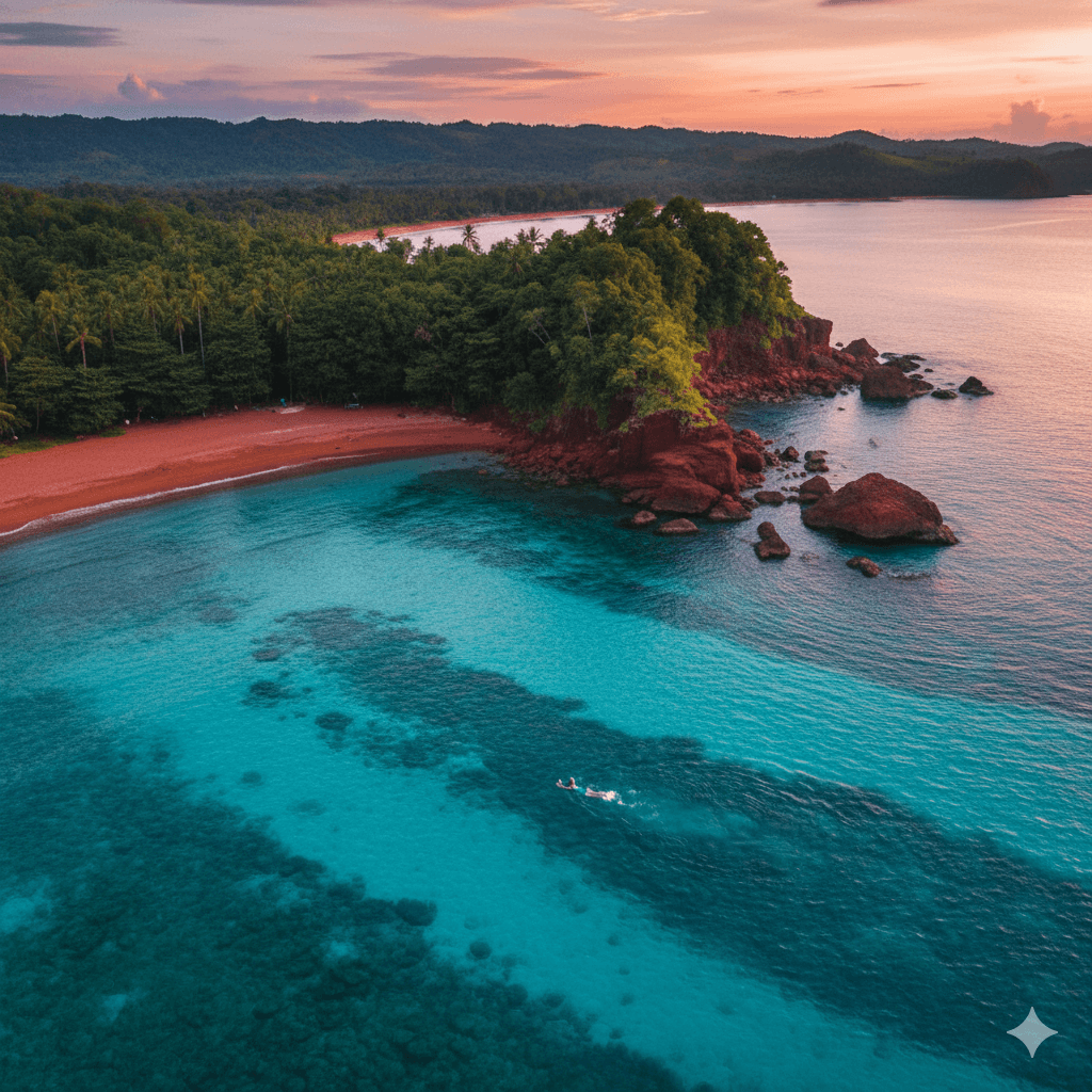 Pulau Merah dan Jawatan adalah dua destinasi ikonik di Banyuwangi yang menawarkan keindahan alam yang kontras namun sama-sama memukau. Pulau Merah dikenal dengan pantainya yang luas, ombak ideal untuk surfing, serta bukit merah khas yang menjadi ciri utamanya saat matahari terbenam. Sementara itu, Jawatan menghadirkan suasana hutan hijau yang rimbun dengan deretan pohon trembesi besar yang menjulang megah, menciptakan nuansa mistis dan fotogenik seperti berada di dunia fantasi. Kombinasi pesona pantai tropis dan hutan magis ini menjadikan Pulau Merah dan Jawatan pilihan sempurna untuk wisata alam yang tenang, eksotis, dan penuh keindahan.
